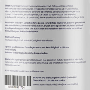 Egal ob zur Wiederherstellung der Darmflora nach einer Antibiotikabehandlung oder zur dauerhaften Unterstützung einer gesunden Verdauung – GastroFortil bietet Ihnen eine zuverlässige und hochwertige Lösung. Gönnen Sie Ihrem Darm das Beste und setzen Sie auf die natürliche Kraft von Probiotika und Präbiotika!
